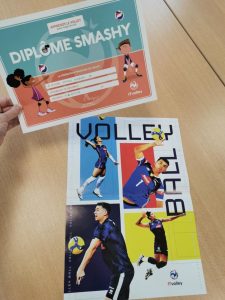 Corentin et Lise, nos intervenants, ont remis à chaque élève un « diplôme smashy » ainsi qu’une affiche de la Fédération Française de Volley.