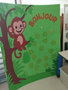 Pour cette première période, nous avons proposé une immersion dans la jungle à nos petits élèves de maternelle. A cette occasion, nous avons décoré le couloir de lianes et de feuilles et nous avons invité quelques petits singes, paresseux, toucans et autres animaux.